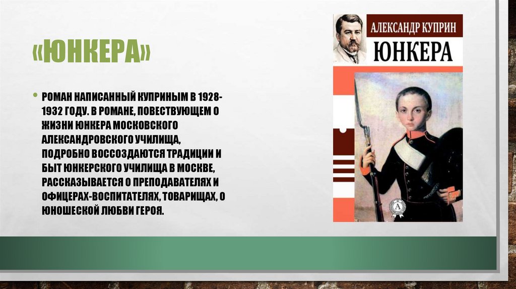 «ЮНКЕРА»• РОМАН НАПИСАННЫЙ КУПРИНЫМ В 1928-
