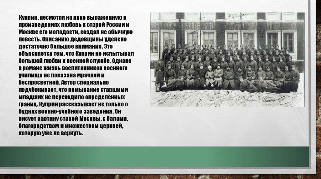 Куприн, несмотря на ярко выраженную впроизведениях любовь к старой России и
