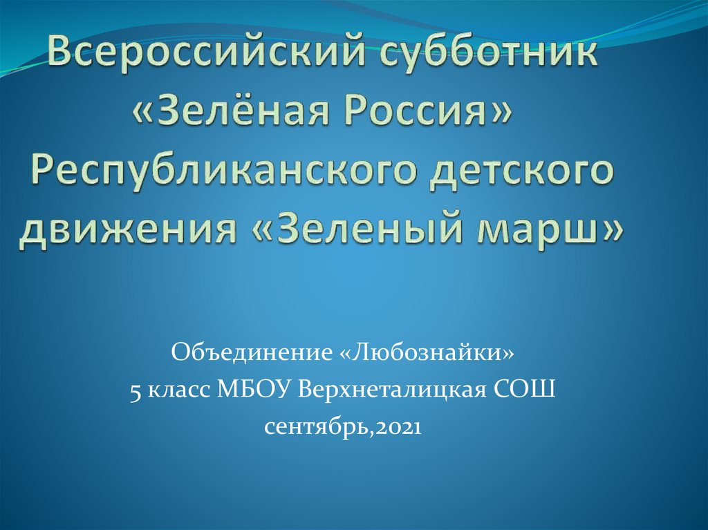 Всероссийский субботник «Зелёная Россия». Республиканского детского движения «Зеленый марш»