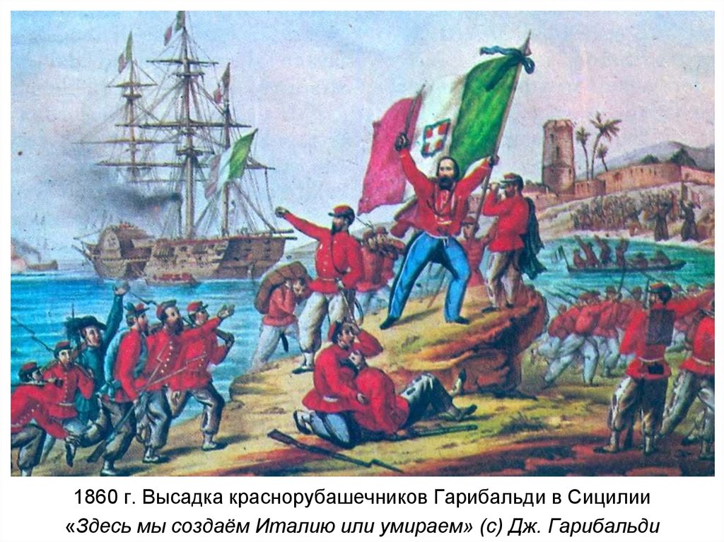 1860 г. Высадка краснорубашечников Гарибальди в Сицилии«Здесь мы создаём Италию или умираем» (с) Дж. Гарибальди