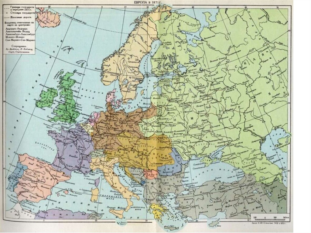 Сравни карту Европы в первой половинеXIX века и во второй половине XIX века.
