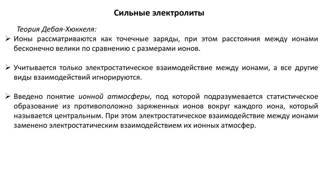 Сильные электролитыТеория Дебая-Хюккеля:
