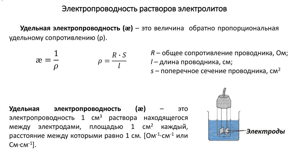 Удельная электропроводность (ᴂ) – это величина обратно пропорциональная