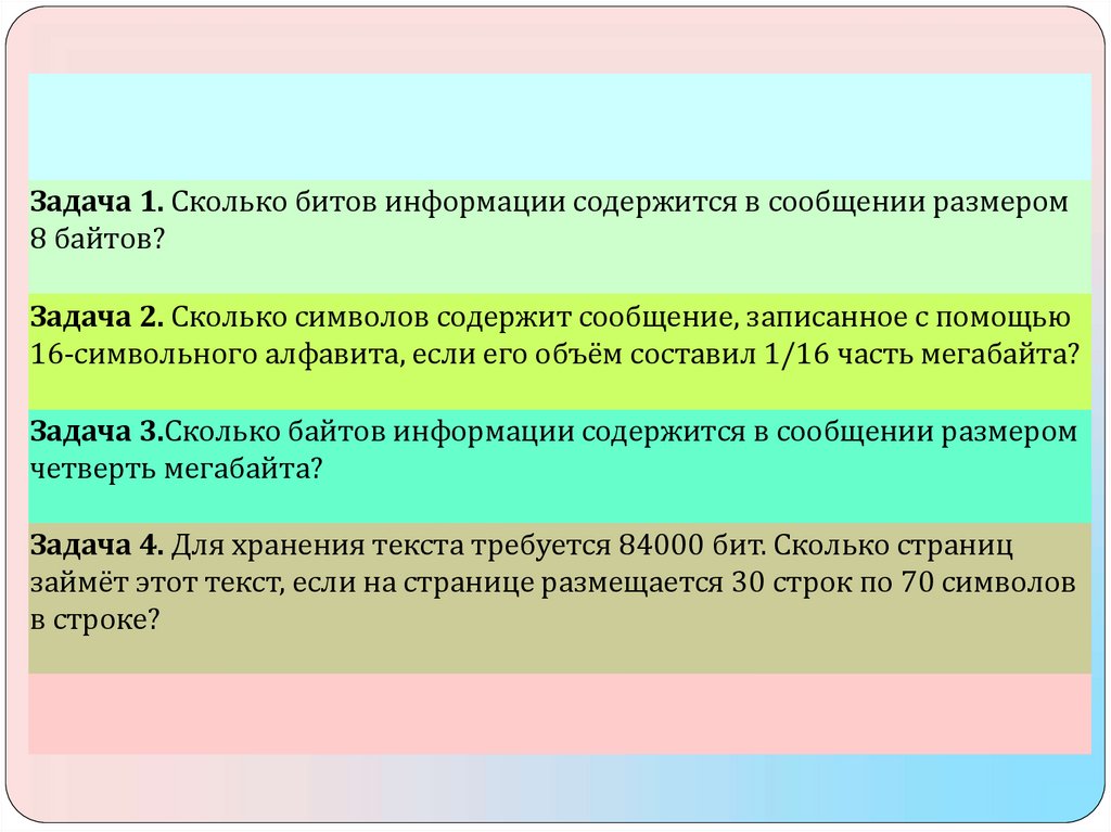 Задача 3.Сколько байтов информации содержится в сообщении размером