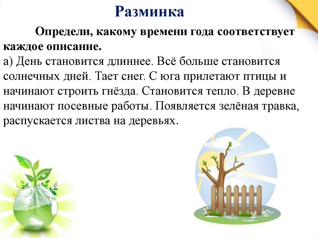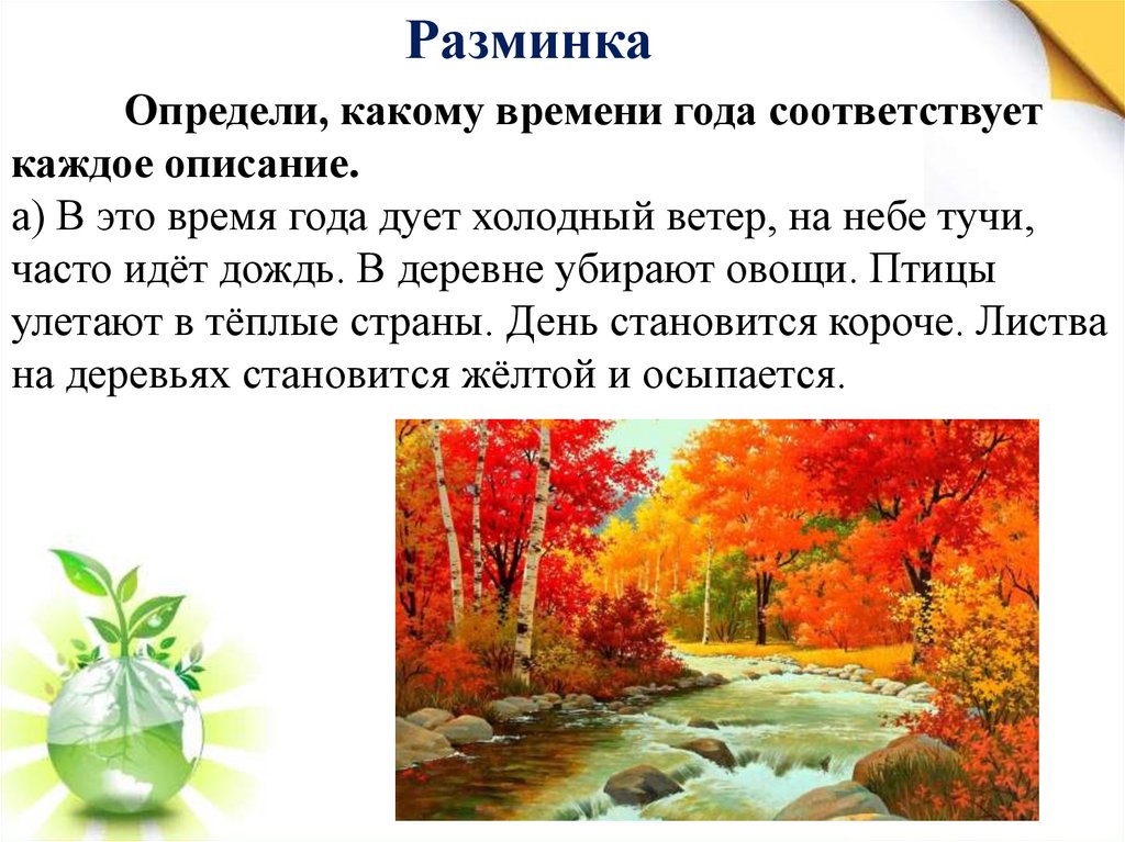 РазминкаОпредели, какому времени года соответствует