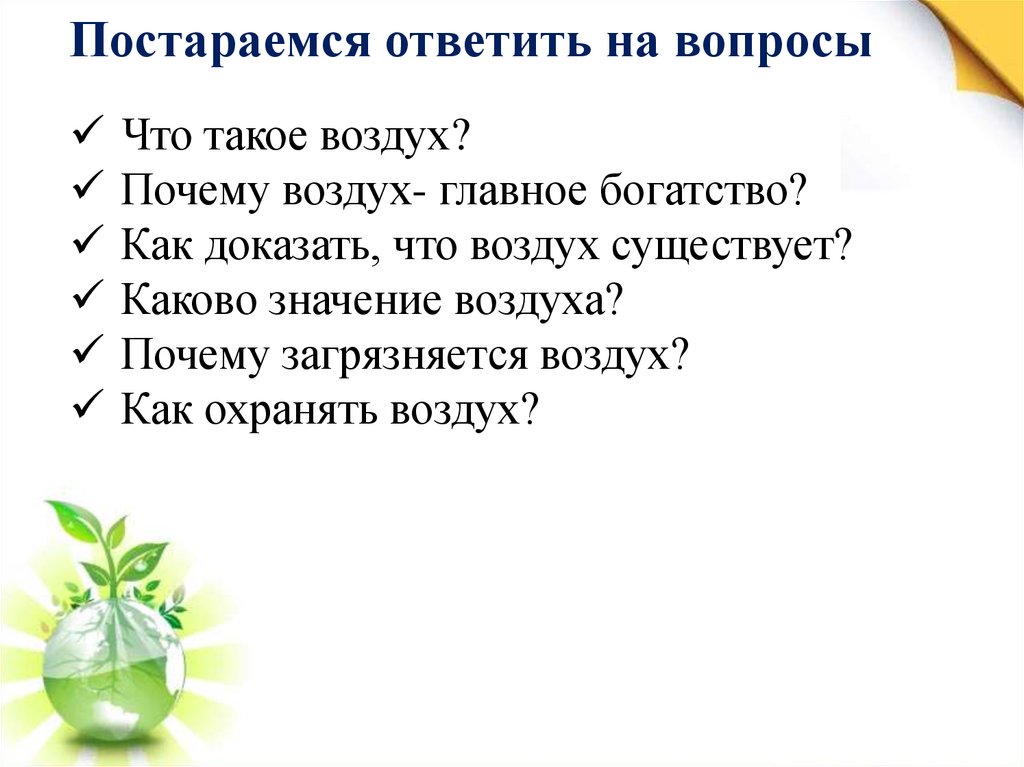 Постараемся ответить на вопросыЧто такое воздух?