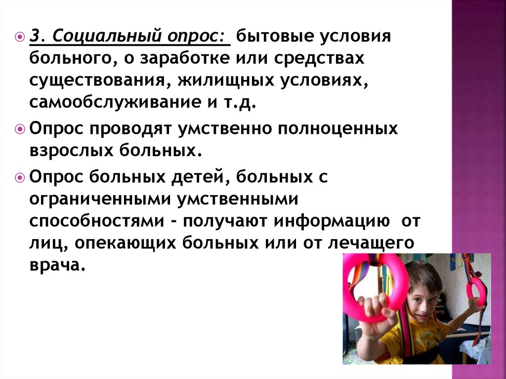 Опрос больных детей, больных с