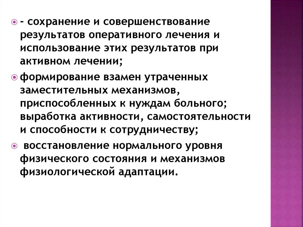 Задачикинезитерапии зависят от периода