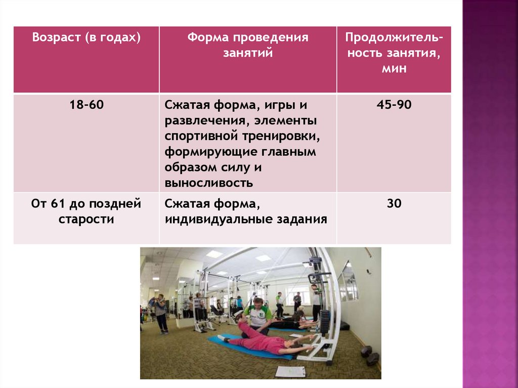 Возраст (в годах)Форма проведения