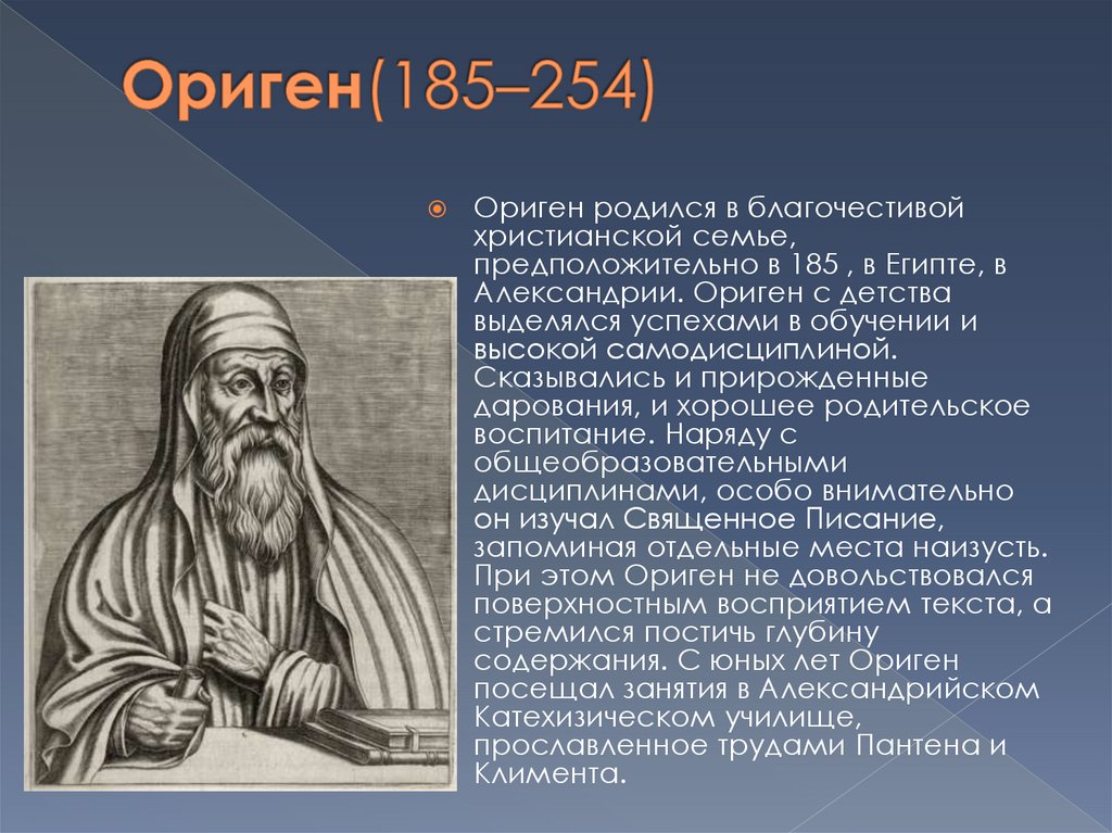 содержания. С юных лет Ориген