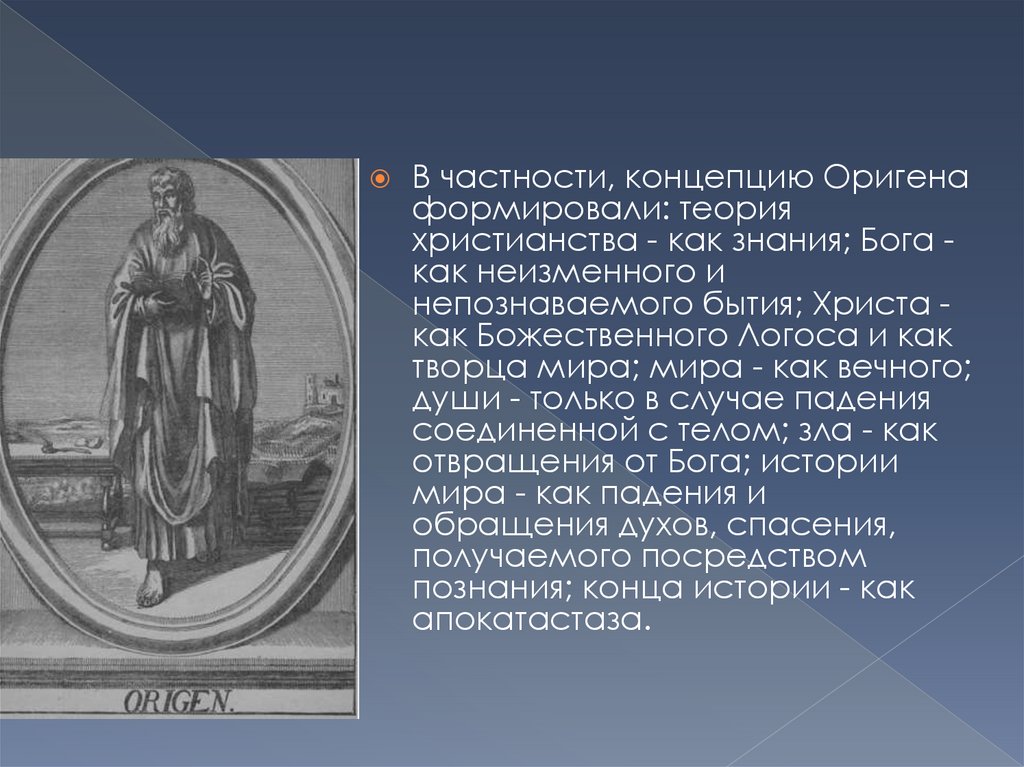 В частности, концепцию Оригенаформировали: теория