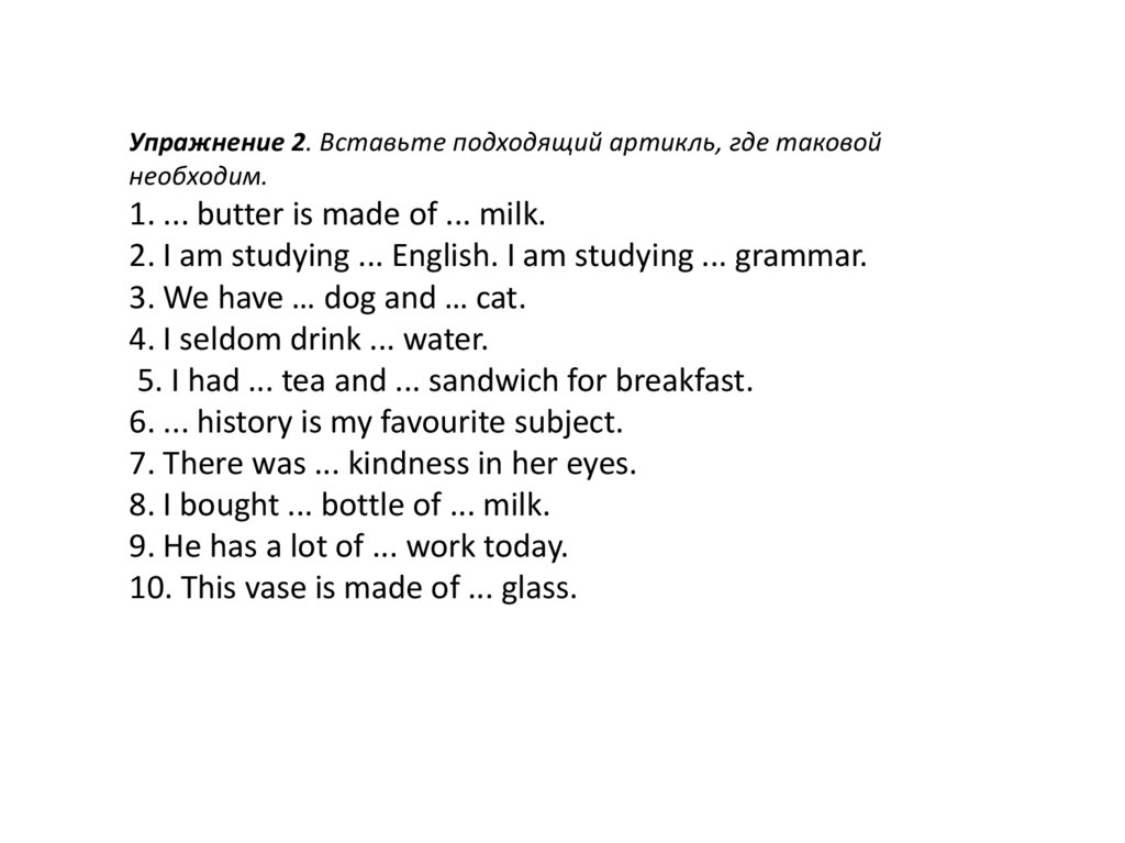 Упражнение 2. Вставьте подходящий артикль, где таковойнеобходим.