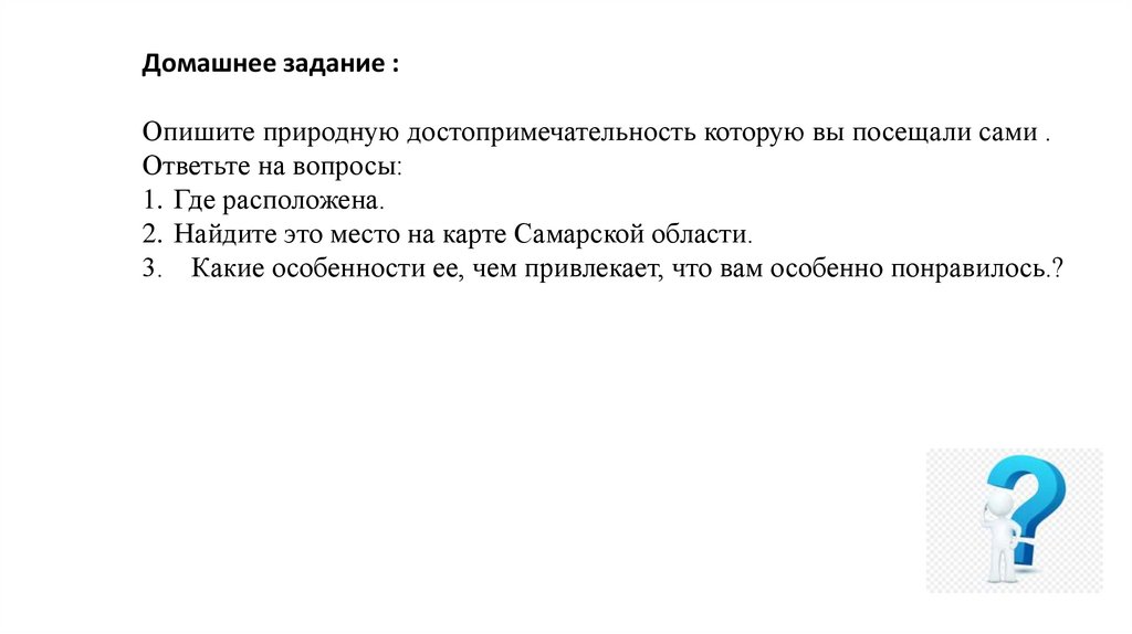 Домашнее задание :Опишите природную достопримечательность которую вы посещали сами .