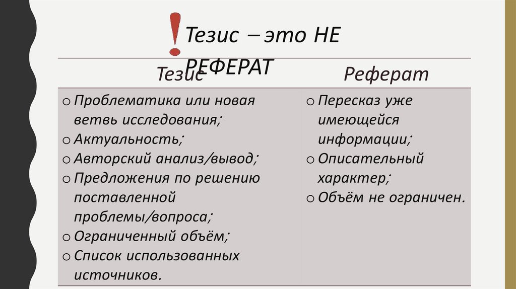 Тезис – это НЕРЕФЕРАТ