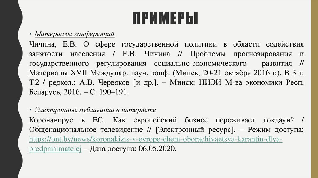 ПРИМЕРЫ• Материалы конференций