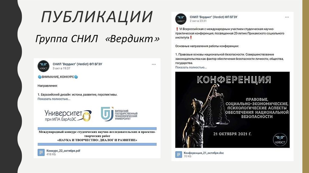 ПУБЛИКАЦИИГруппа СНИЛ «Вердикт»