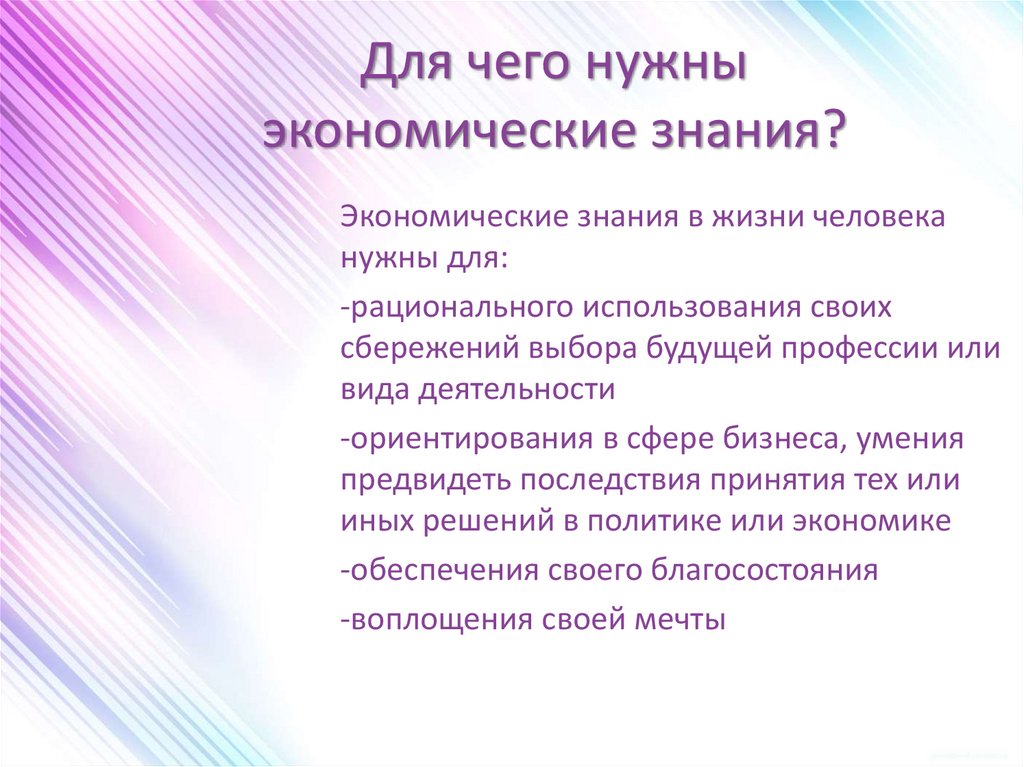 Для чего нужныэкономические знания?