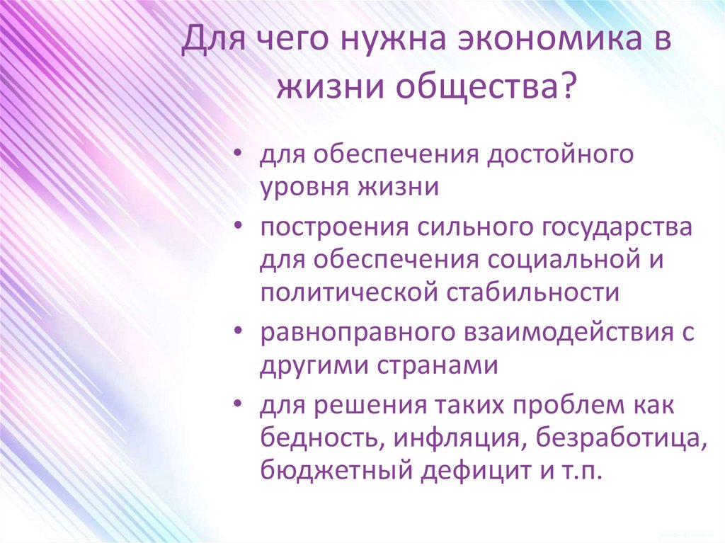 Для чего нужна экономика вжизни общества?