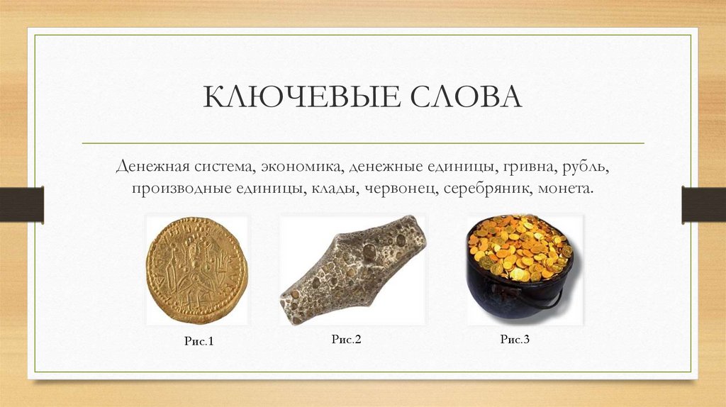 КЛЮЧЕВЫЕ СЛОВАДенежная система, экономика, денежные единицы, гривна, рубль,