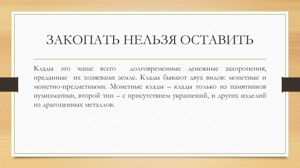 ЗАКОПАТЬ НЕЛЬЗЯ ОСТАВИТЬКлады это чаще всего