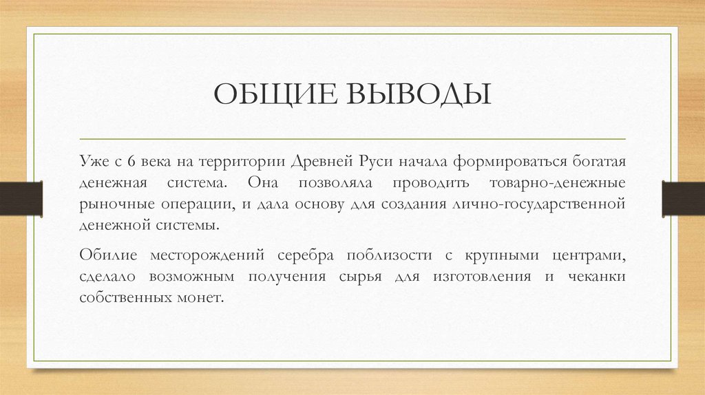 ИТОГВ итоге в 13 веке, прочно оформилась структура денежной системы Руси.