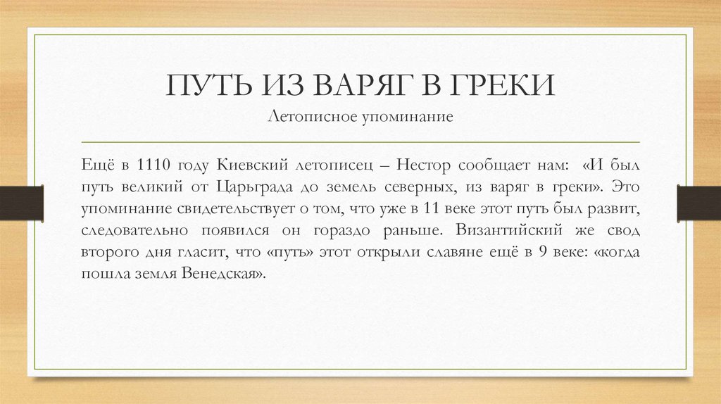 ПУТЬ ИЗ ВАРЯГ В ГРЕКИЛетописное упоминание