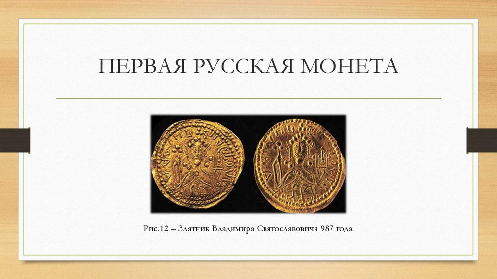 ПЕРВАЯ РУССКАЯ МОНЕТАРис.12 – Златник Владимира Святославовича 987 года.
