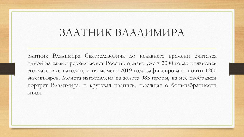 ЗЛАТНИК ВЛАДИМИРАЗлатник Владимира Святославовича до недавнего времени считался