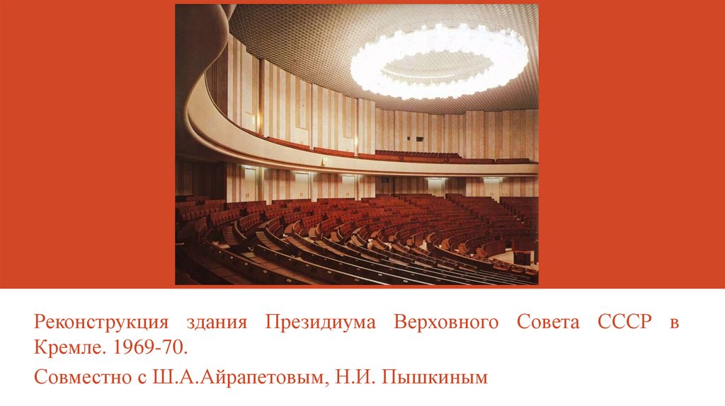 Реконструкция здания Президиума Верховного Совета СССР вКремле. 1969-70.