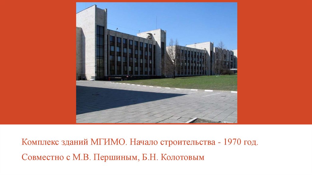 Комплекс зданий МГИМО. Начало строительства - 1970 год.Совместно с М.В. Першиным, Б.Н. Колотовым