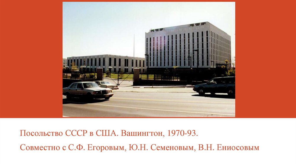 Посольство СССР в США. Вашингтон, 1970-93.Совместно с С.Ф. Егоровым, Ю.Н. Семеновым, В.Н. Ениосовым