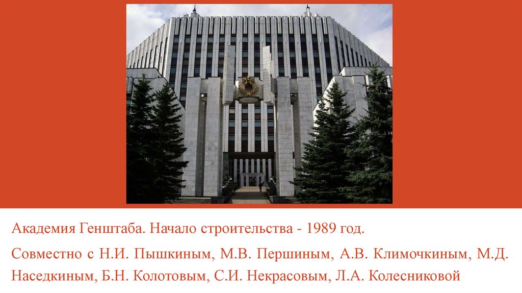 Академия Генштаба. Начало строительства - 1989 год.Совместно с Н.И. Пышкиным, М.В. Першиным, А.В. Климочкиным, М.Д.