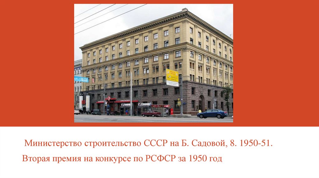 Министерство строительство СССР на Б. Садовой, 8. 1950-51.Вторая премия на конкурсе по РСФСР за 1950 год