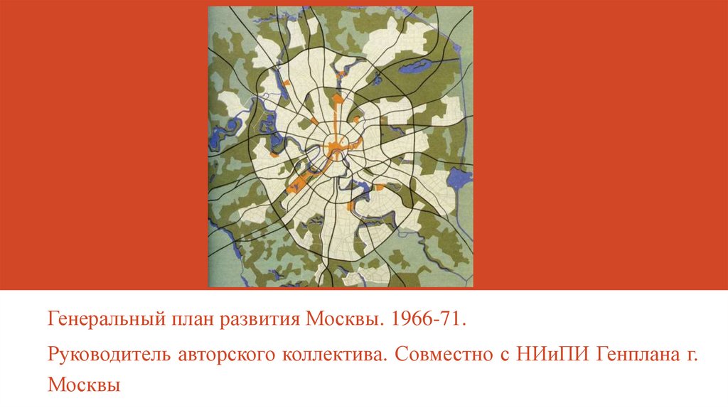 Генеральный план развития Москвы. 1966-71.Руководитель авторского коллектива. Совместно с НИиПИ Генплана г.