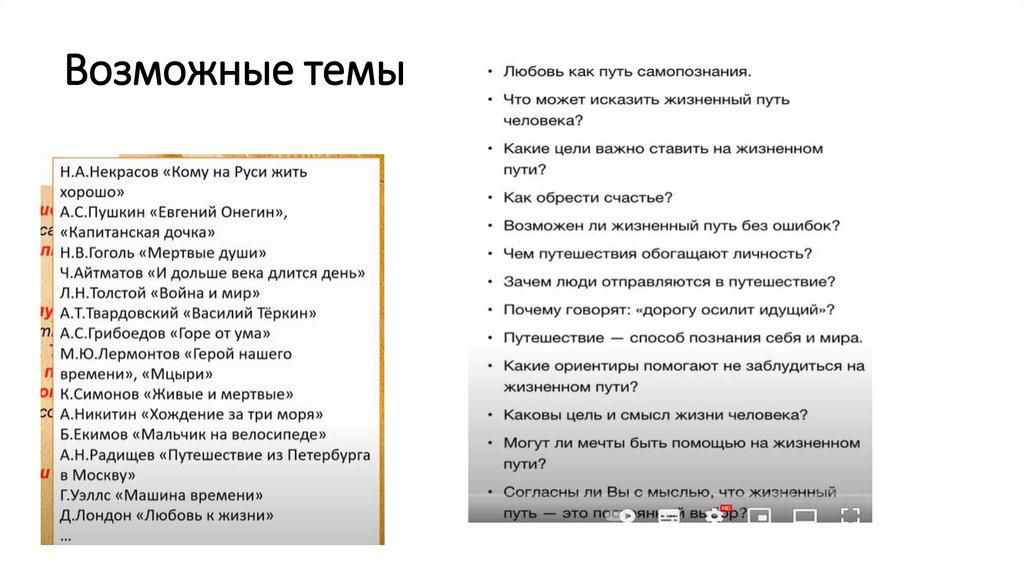 Возможные темы