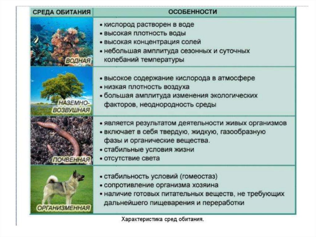обитает живой организм, часть природы,