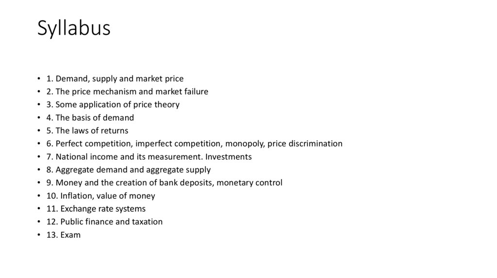 Syllabus1. Demand, supply and market price