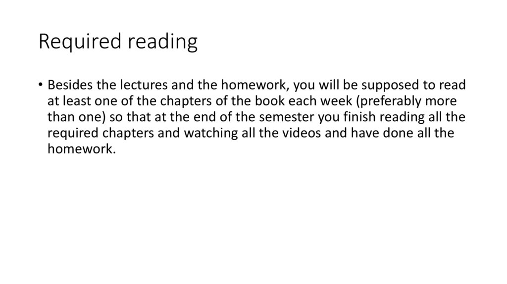 Required reading• Besides the lectures and the homework, you will be supposed to read