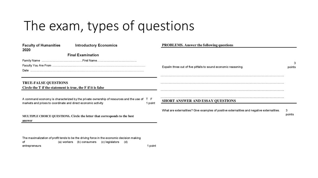The exam, types of questionsFaculty of Humanities