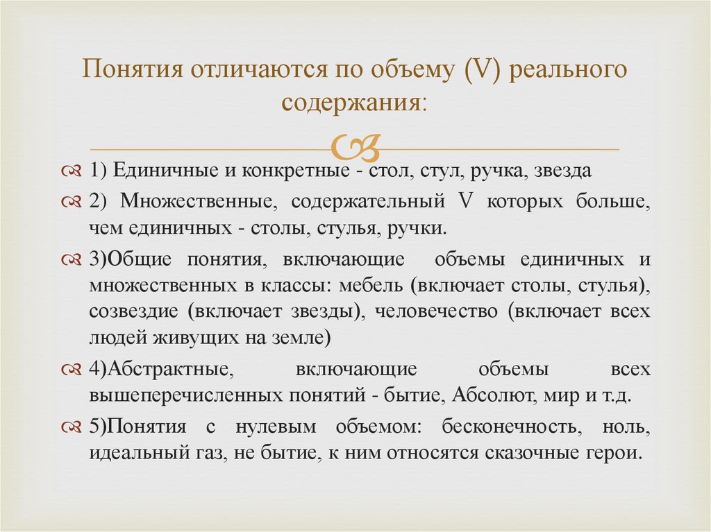 Понятия отличаются по объему (V) реальногосодержания: