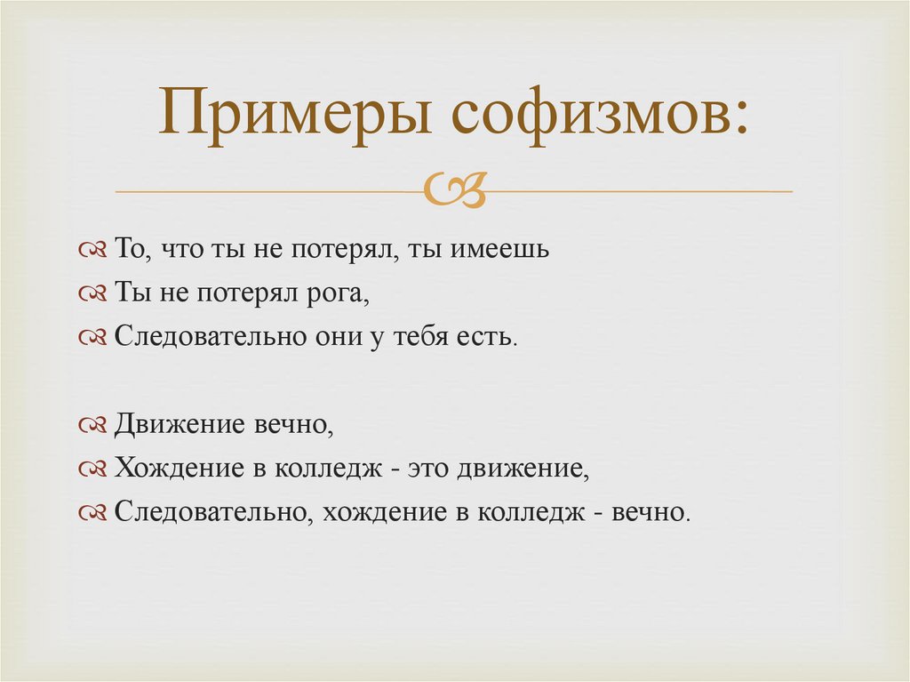 Примеры софизмов:То, что ты не потерял, ты имеешь