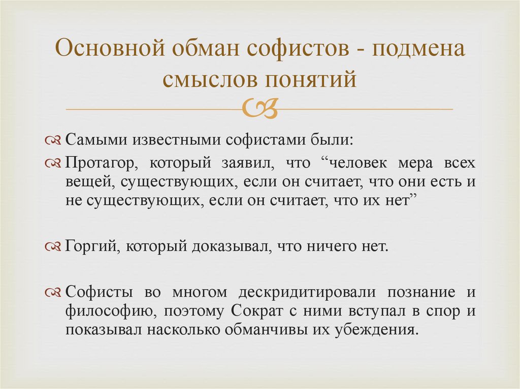 Основной обман софистов - подменасмыслов понятий