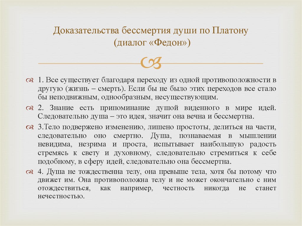 Доказательства бессмертия души по Платону(диалог «Федон»)