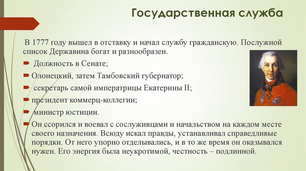 Государственная службаВ 1777 году вышел в отставку и начал службу гражданскую. Послужной
