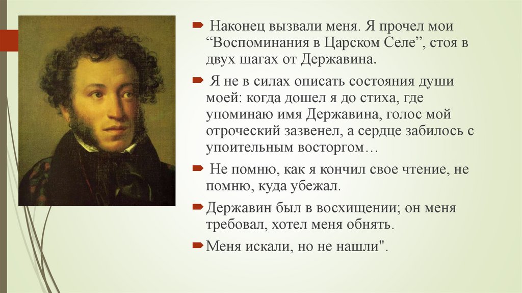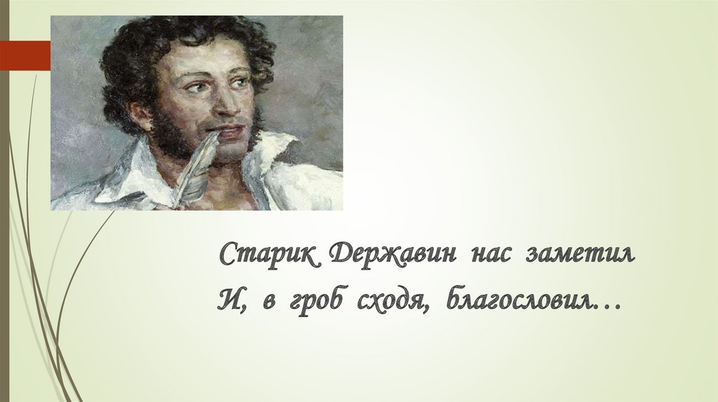 Старик Державин нас заметилИ, в гроб сходя, благословил…