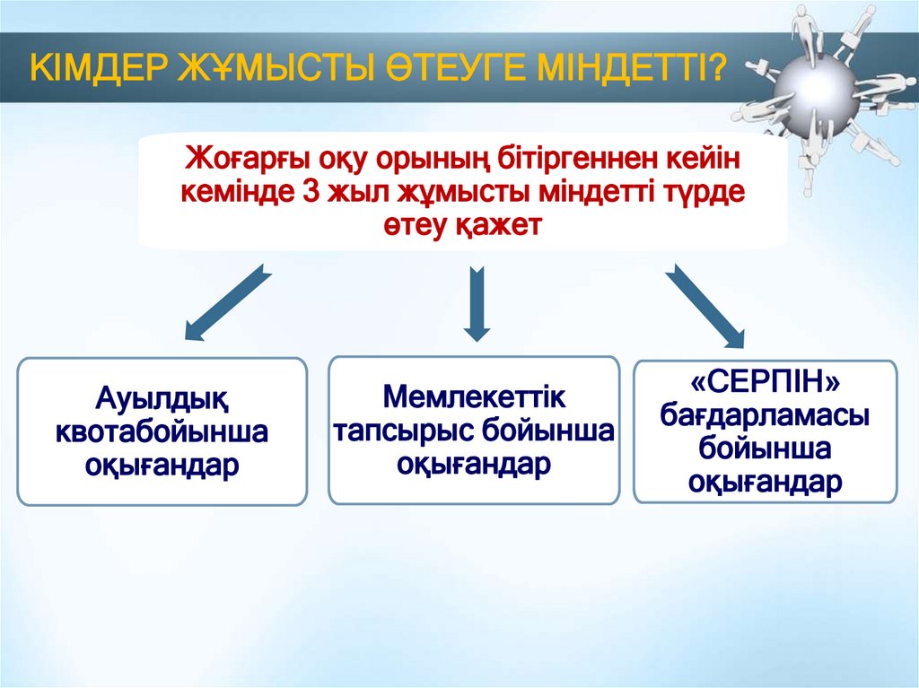 КІМДЕР ЖҰМЫСТЫ ӨТЕУГЕ МІНДЕТТІ?Жоғарғы оқу орының бітіргеннен кейін