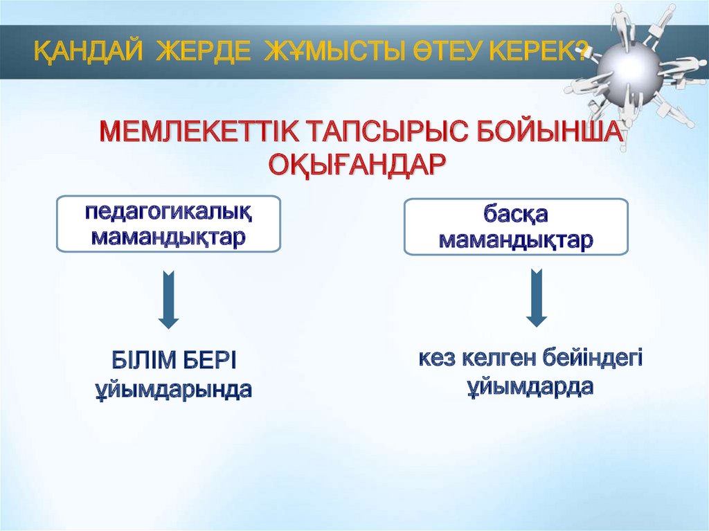 ҚАНДАЙ ЖЕРДЕ ЖҰМЫСТЫ ӨТЕУ КЕРЕК?МЕМЛЕКЕТТІК ТАПСЫРЫС БОЙЫНША