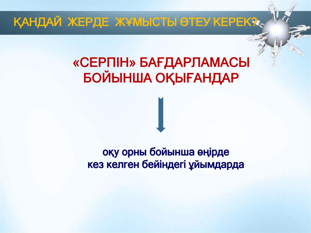 ҚАНДАЙ ЖЕРДЕ ЖҰМЫСТЫ ӨТЕУ КЕРЕК?«СЕРПІН» БАҒДАРЛАМАСЫ