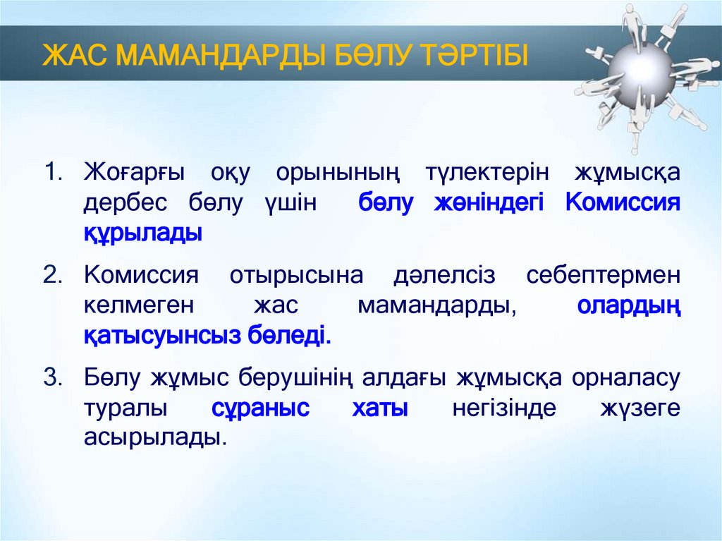 ЖАС МАМАНДАРДЫ БӨЛУ ТӘРТІБІ1. Жоғарғы оқу орынының түлектерін жұмысқа