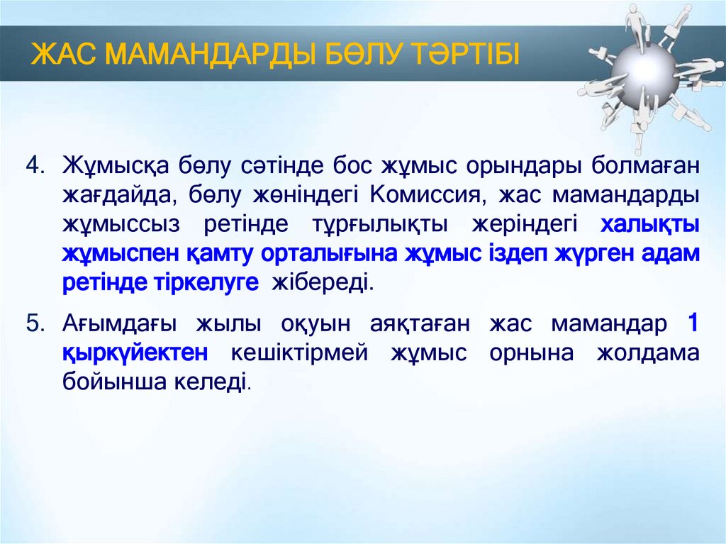 ЖАС МАМАНДАРДЫ БӨЛУ ТӘРТІБІ4. Жұмысқа бөлу сәтінде бос жұмыс орындары болмаған